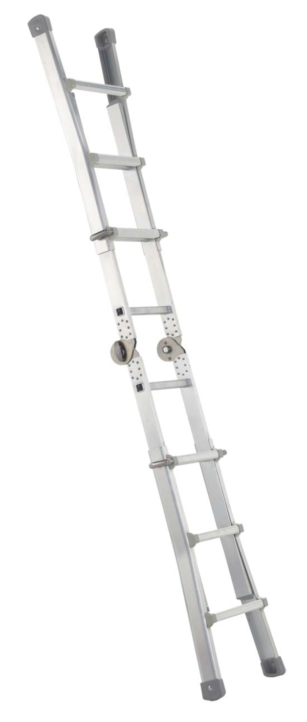 Anlegeleiter, Stehleiter und treppengängige Stehleiter in einem.