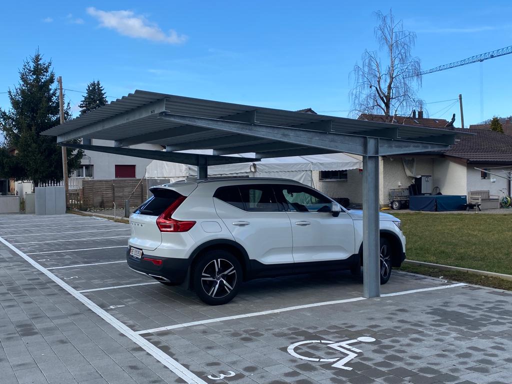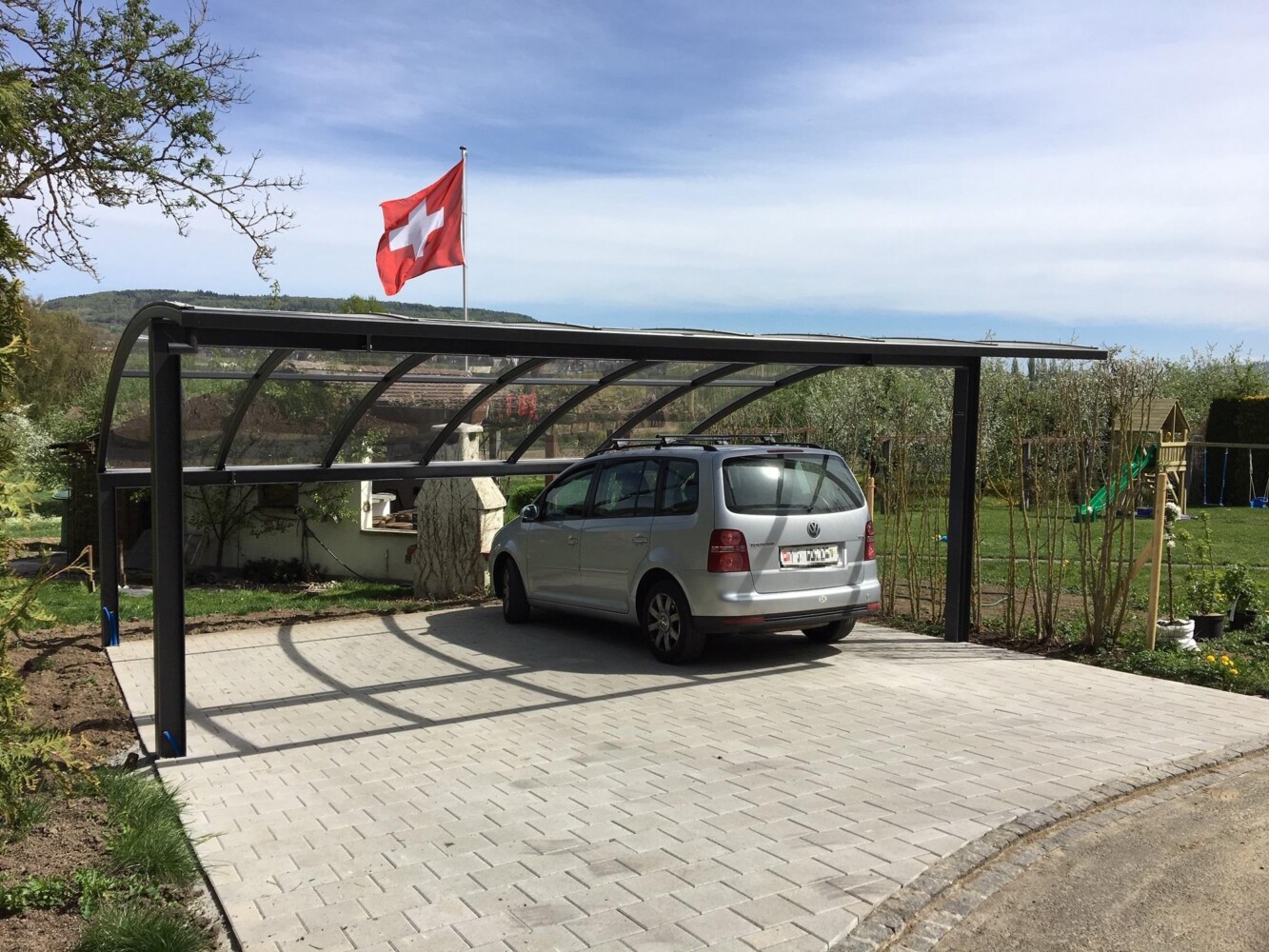 Autounterstand Typ ATSSSchutz in modernem Design Der Typ ATSS ist aus unseren Veloüberdachungen entstanden Das grosszügige Bogendach bietet Schutz und ist trotzdem leicht und modern an zu schauen. Platzbedarf pro Auto in der Breite 2,5m Standardausführungen Stabile, feuerverzinkte Stahlkonstruktion (nach SIA).