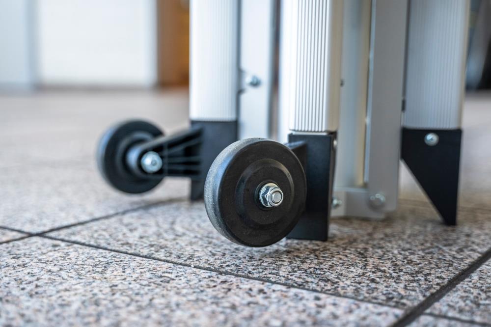 - Die teleskopischen Füße sind millimetergenau einstellbar und ermöglichen das Arbeiten auf Treppen oder nah an einer Mauer oder Wand.