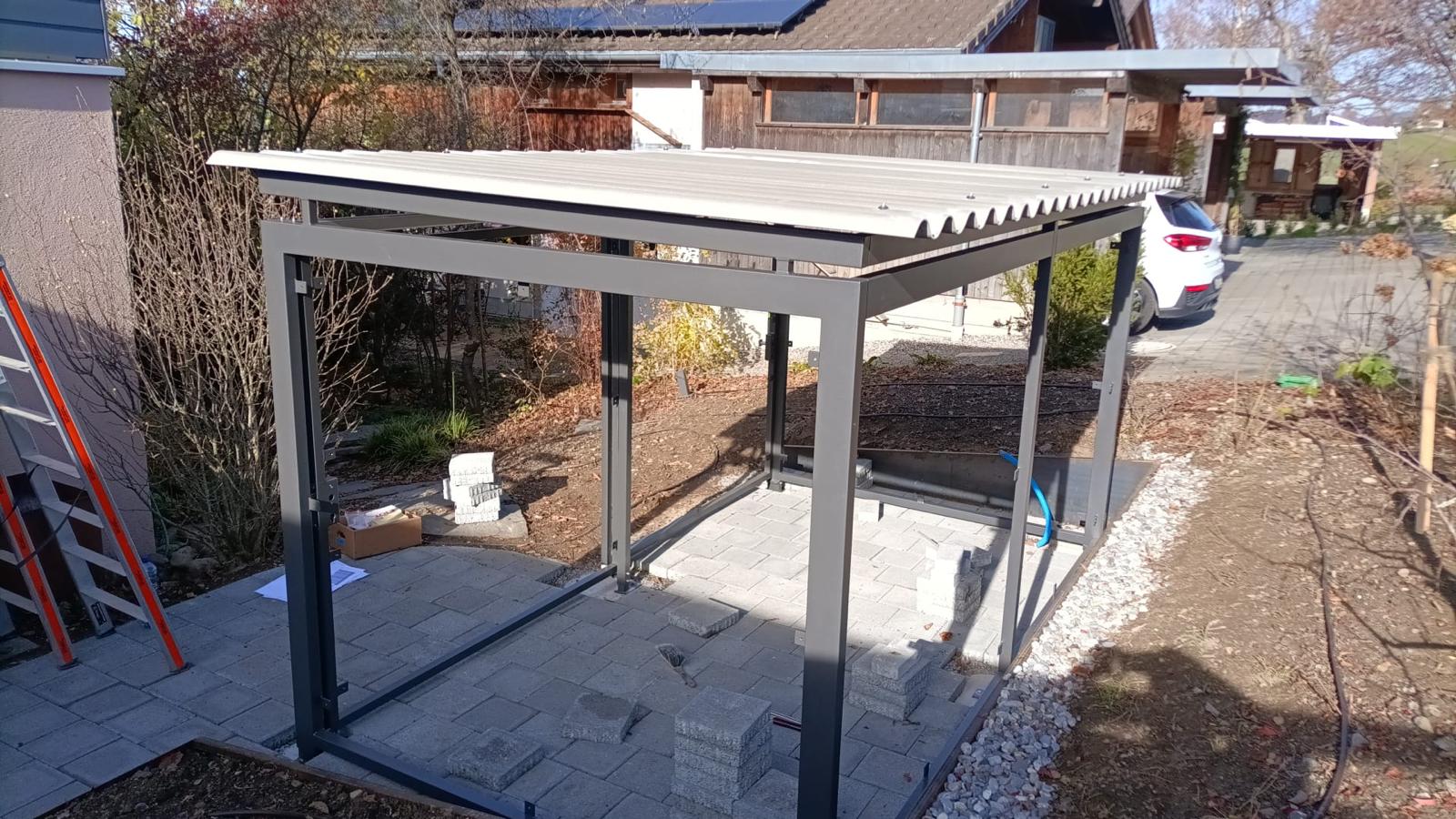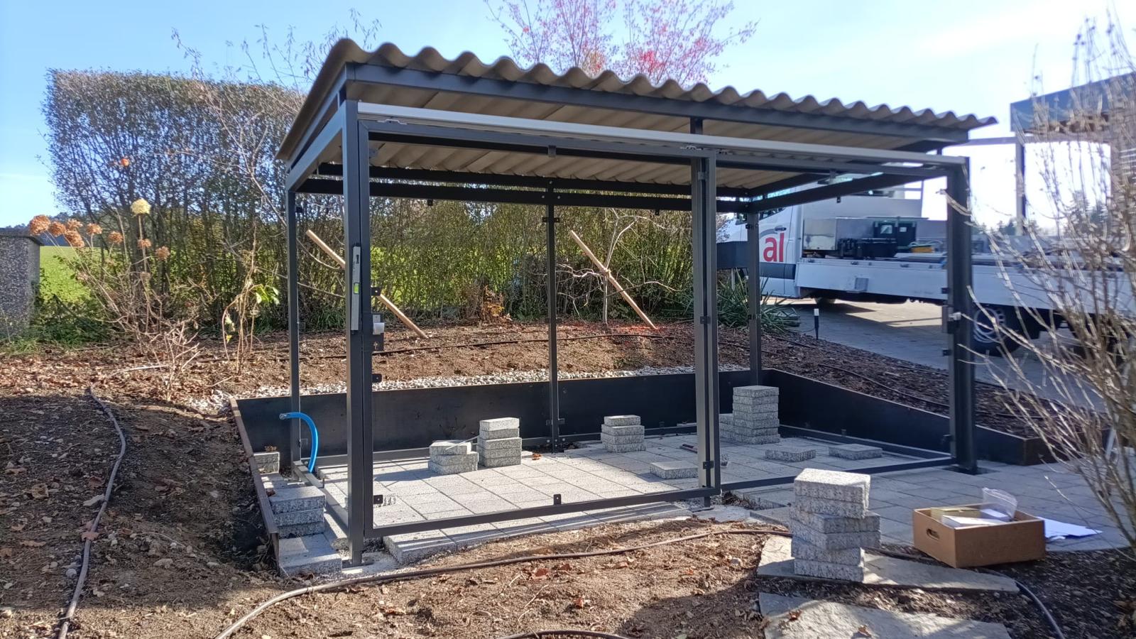 Stabile, feuerverzinkte Stahlkonstruktion (nach SIA). Bedachung mit Verbundsicherheitsglas (VSG).