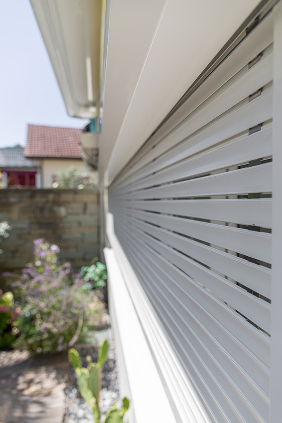 Der Aluminium-Rollladenpanzer A 36 bietet ein optimales Verhältnis zwischen Stabilität und geringen Ballendurchmessern. Diese Eigenschaften ermöglichen es, auch bei großen Fenstern einteilige Rollladen mit kleinen Kästen einzusetzen. Somit kann ein höchstmöglicher Lichteinfall erzielt und der Einsatz störender Führungsschienen im Glasbereich vermieden werden