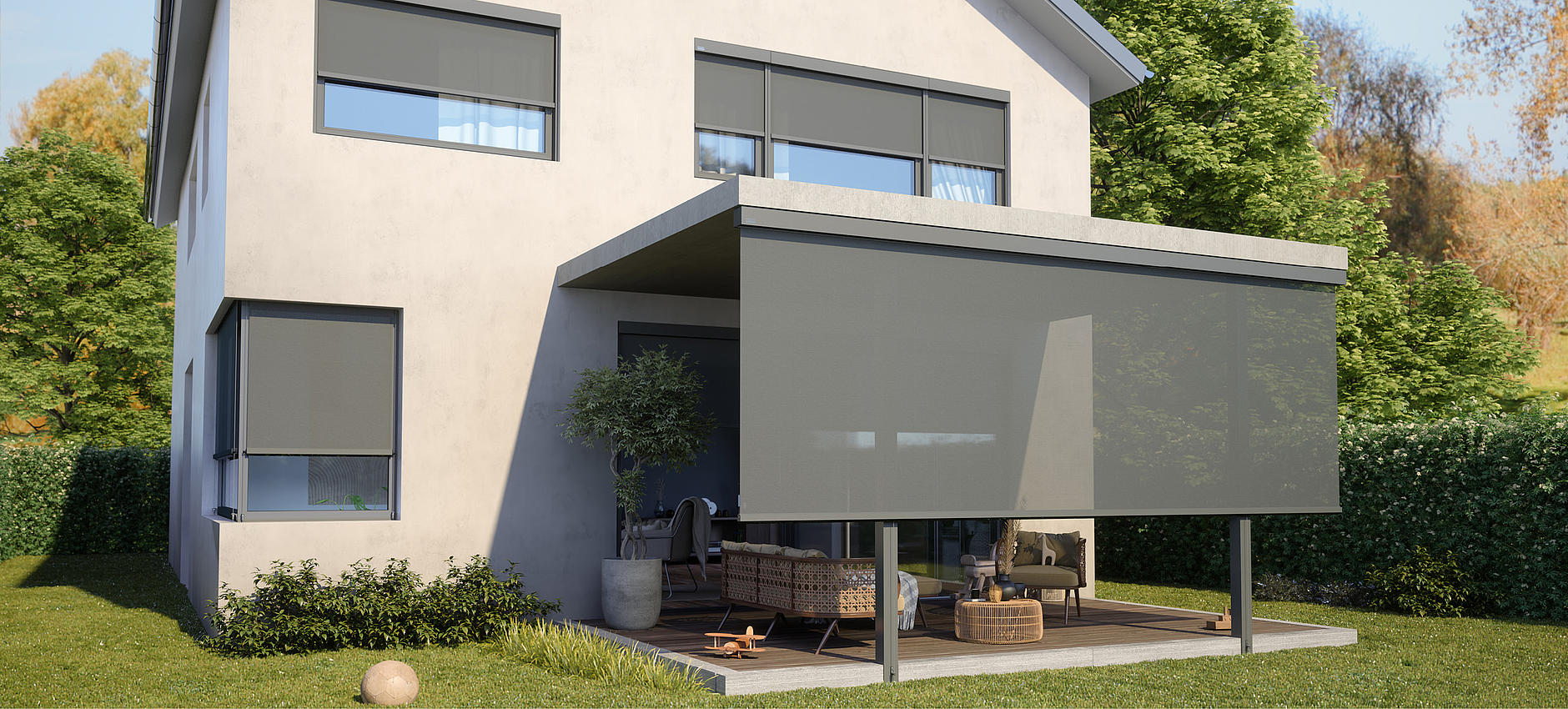 Senkrechtbeschattung mit eckigem oder abgerundeten, einteiligen