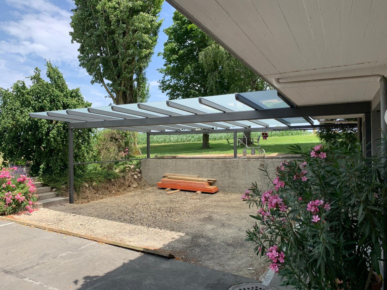 Anbau-Carport mural Flüelaausverkauft Der moderne Anbau-Carport kann platzsparend an jeder